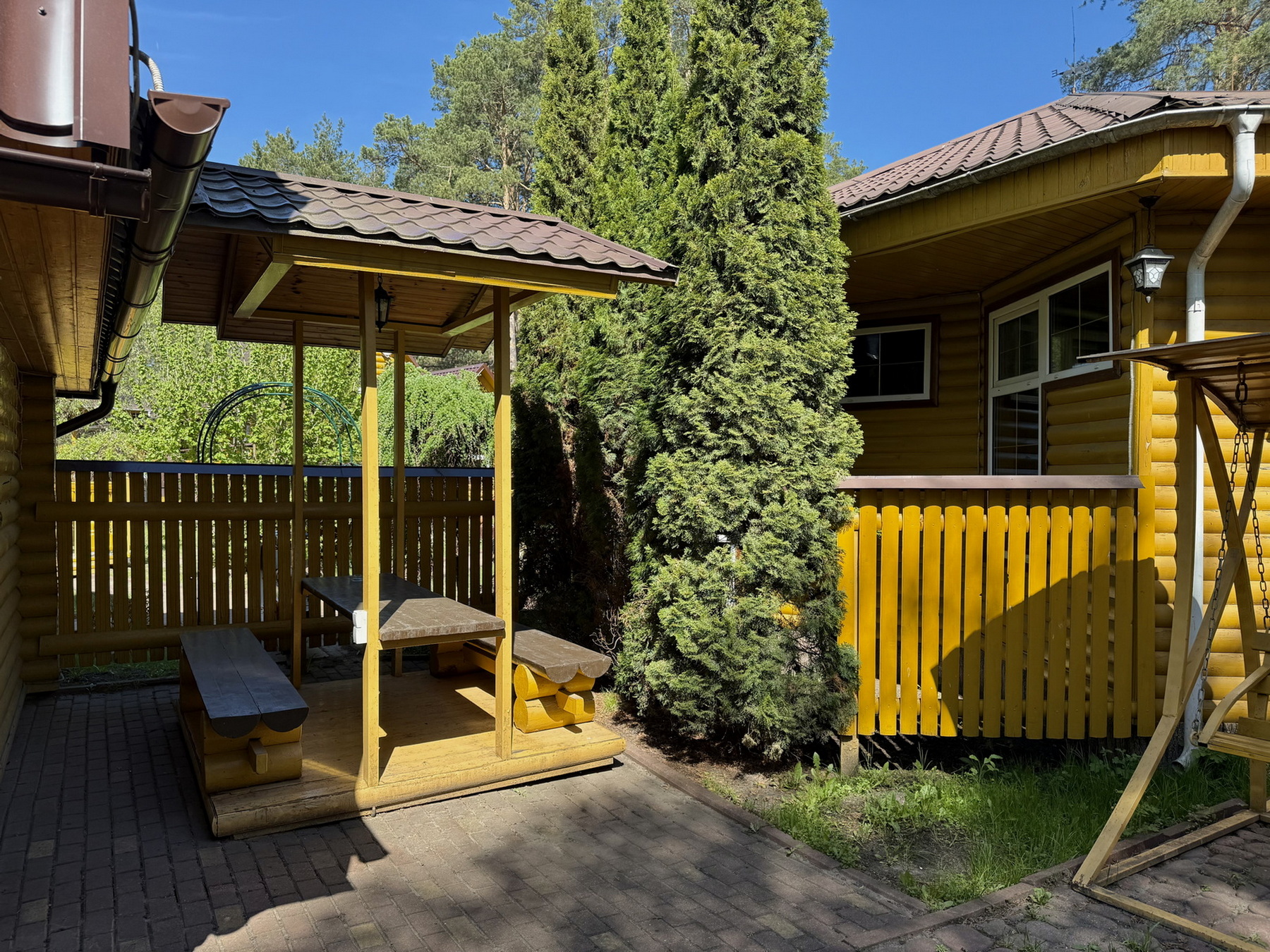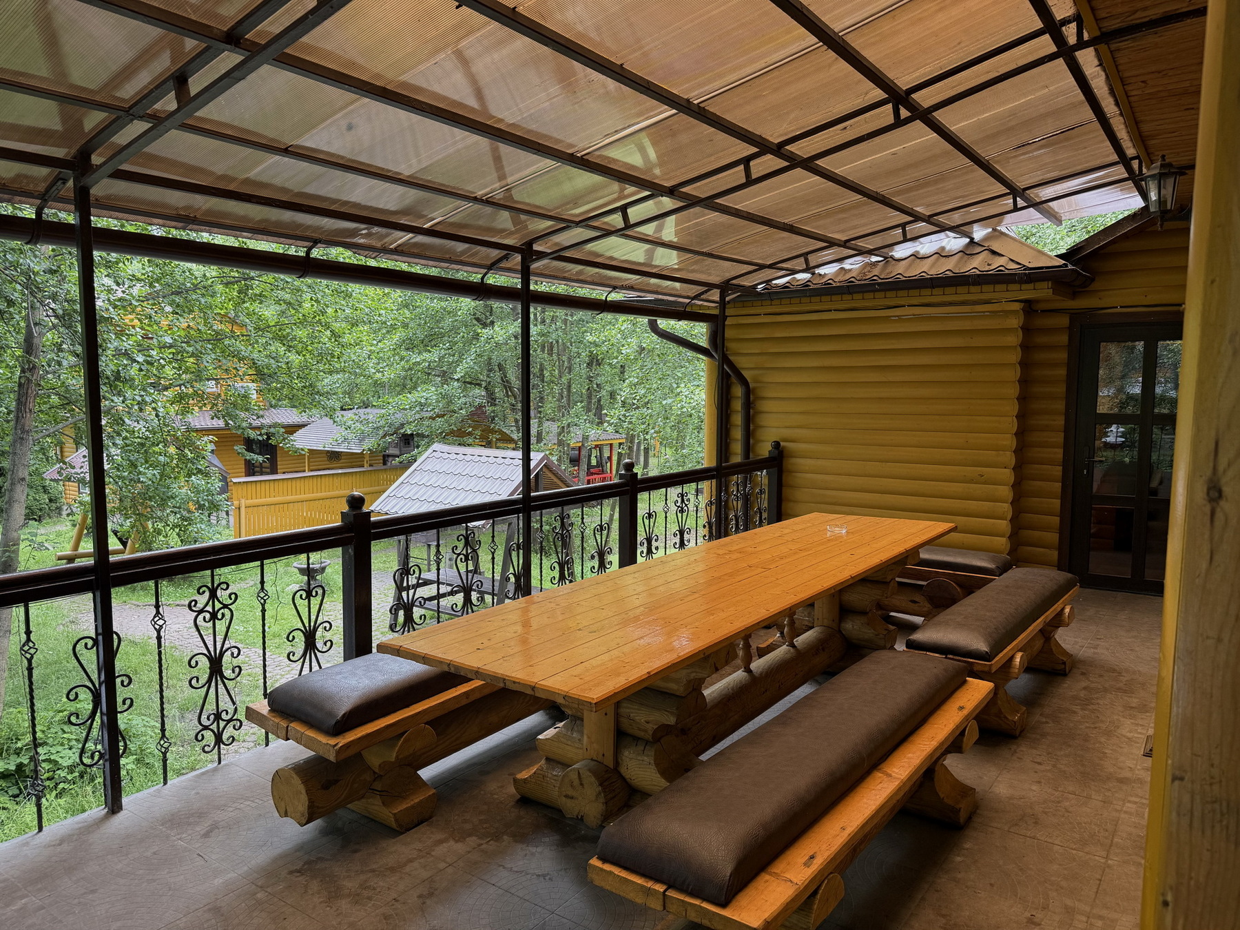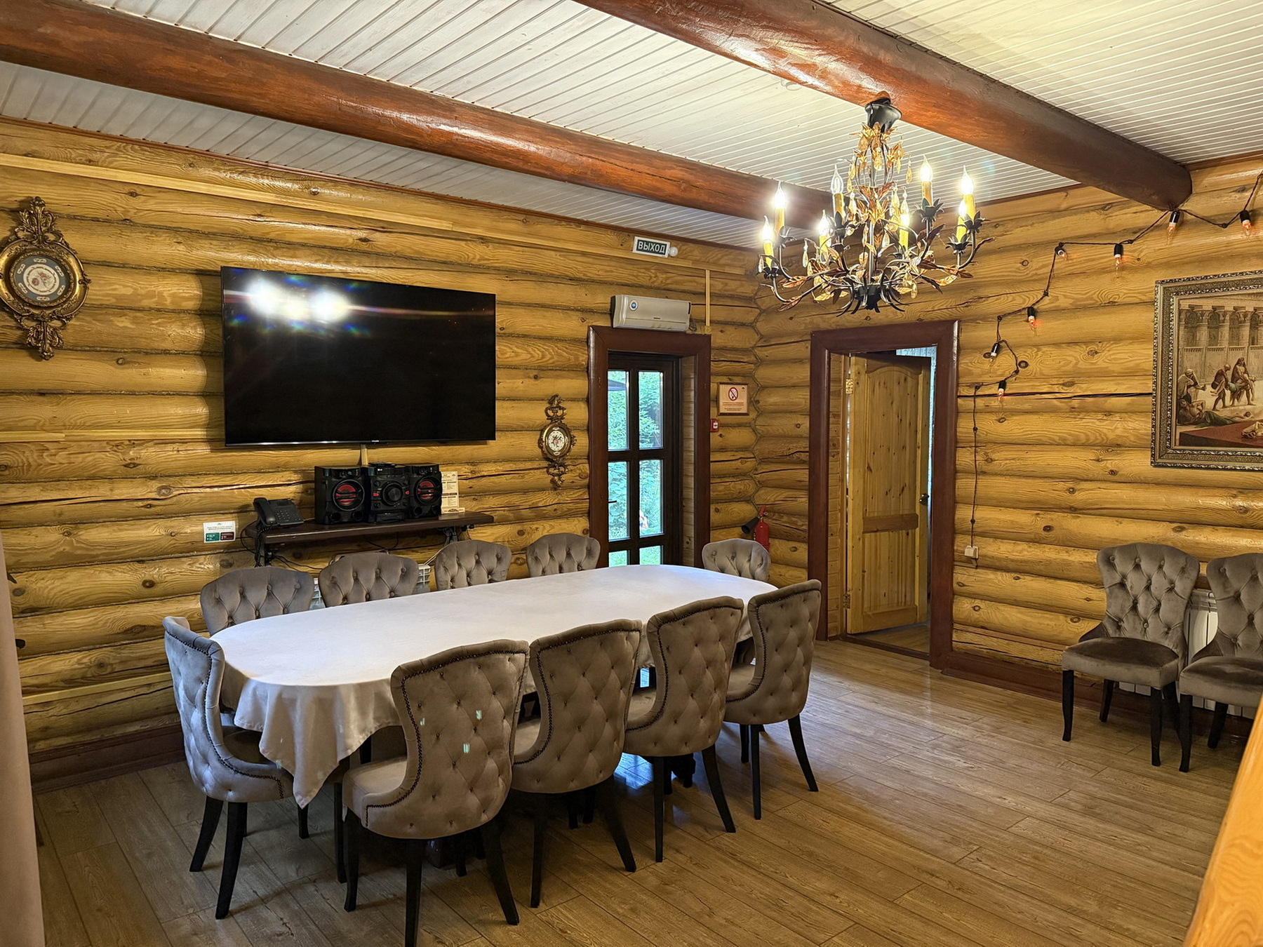 Обновленный двухэтажный коттедж из натурального деревянного сруба расположен в центральной части Клуб-Отеля. С балкона открывается чудесный вид на небольшое озеро. Для комфортного отдыха предусмотрены три раздельные спальни с двуспальными кроватями. Душевых комнат две на первом и втором этажах, каждая укомплектована туалетными принадлежностями. Новая банкетная зона позволит эффектно провести торжество любого формата. В числе удобств финская сухая сауна. В распоряжении гостей закрытая территория с беседкой и мангальной зоной, предоставляется мангальный набор (посуда, шампуры/решетка). В коттедже ежедневно производится уборка, смена белья и полотенец производится по запросу. Фен предоставляется по запросу.