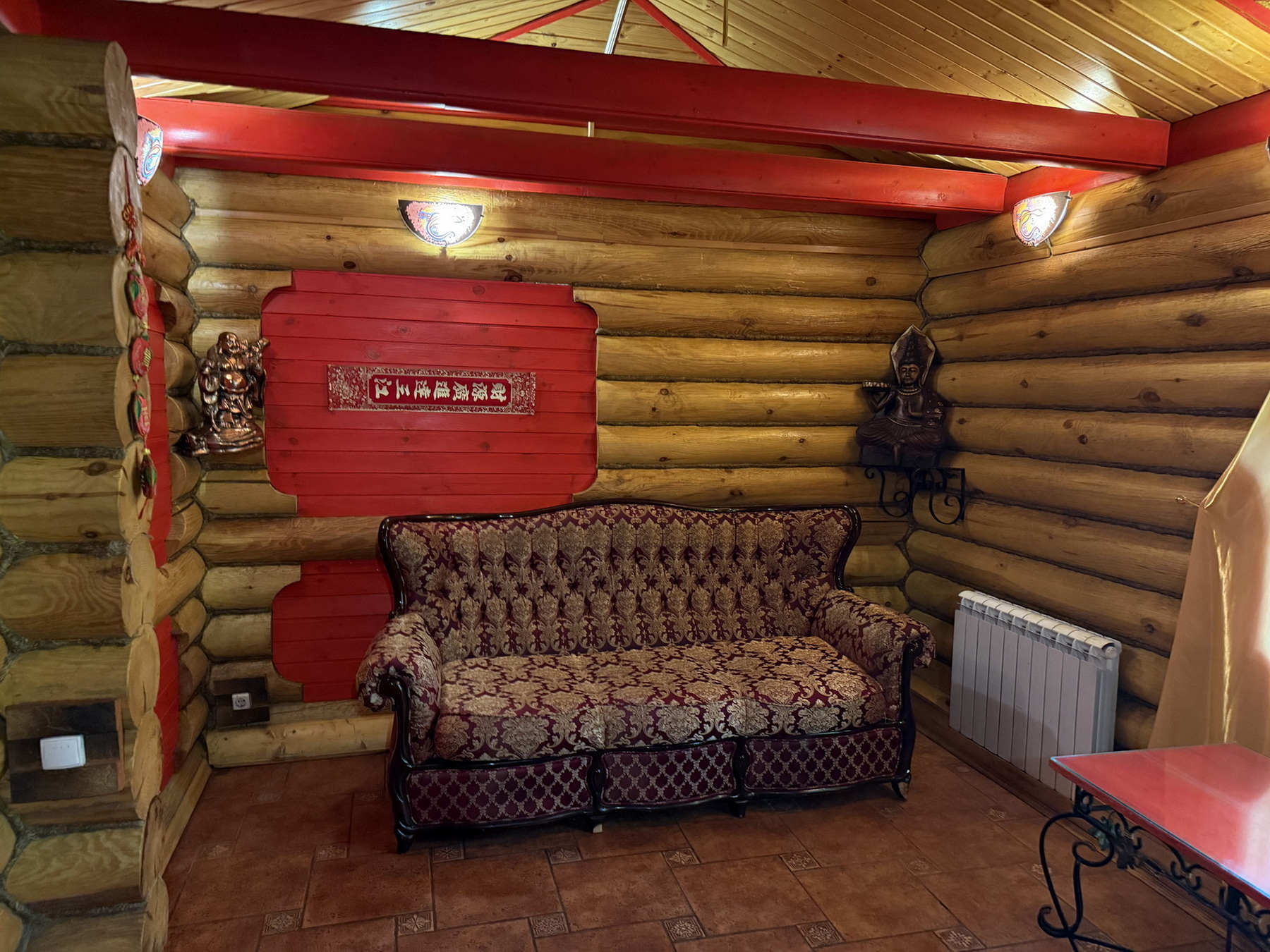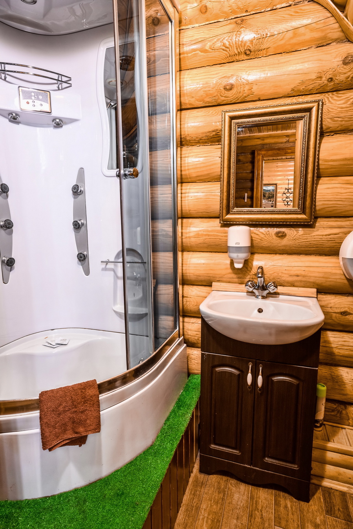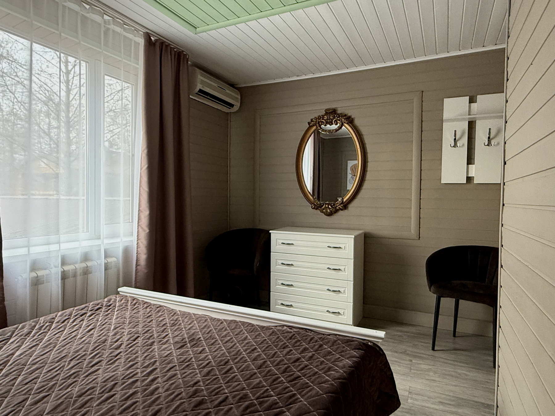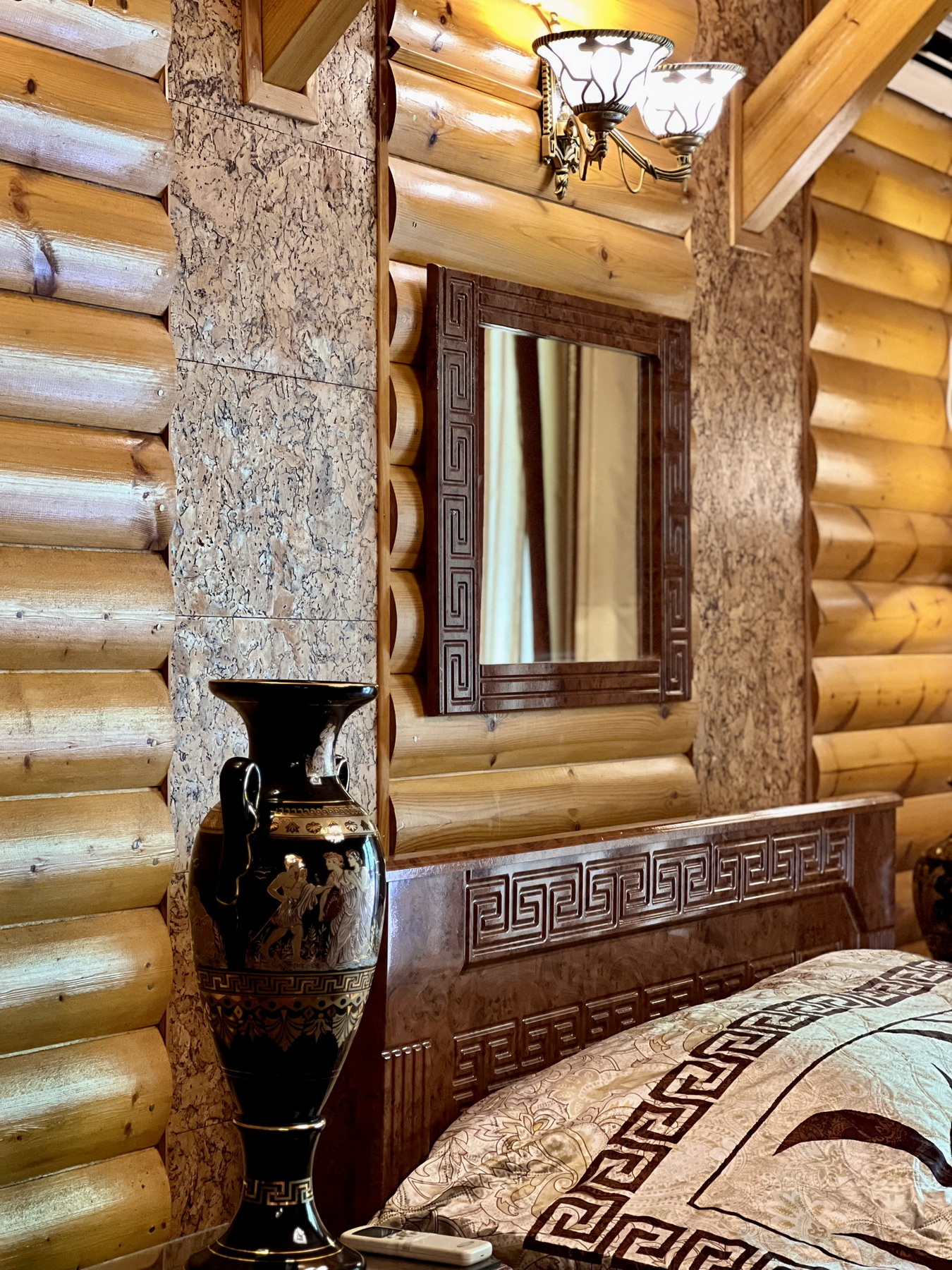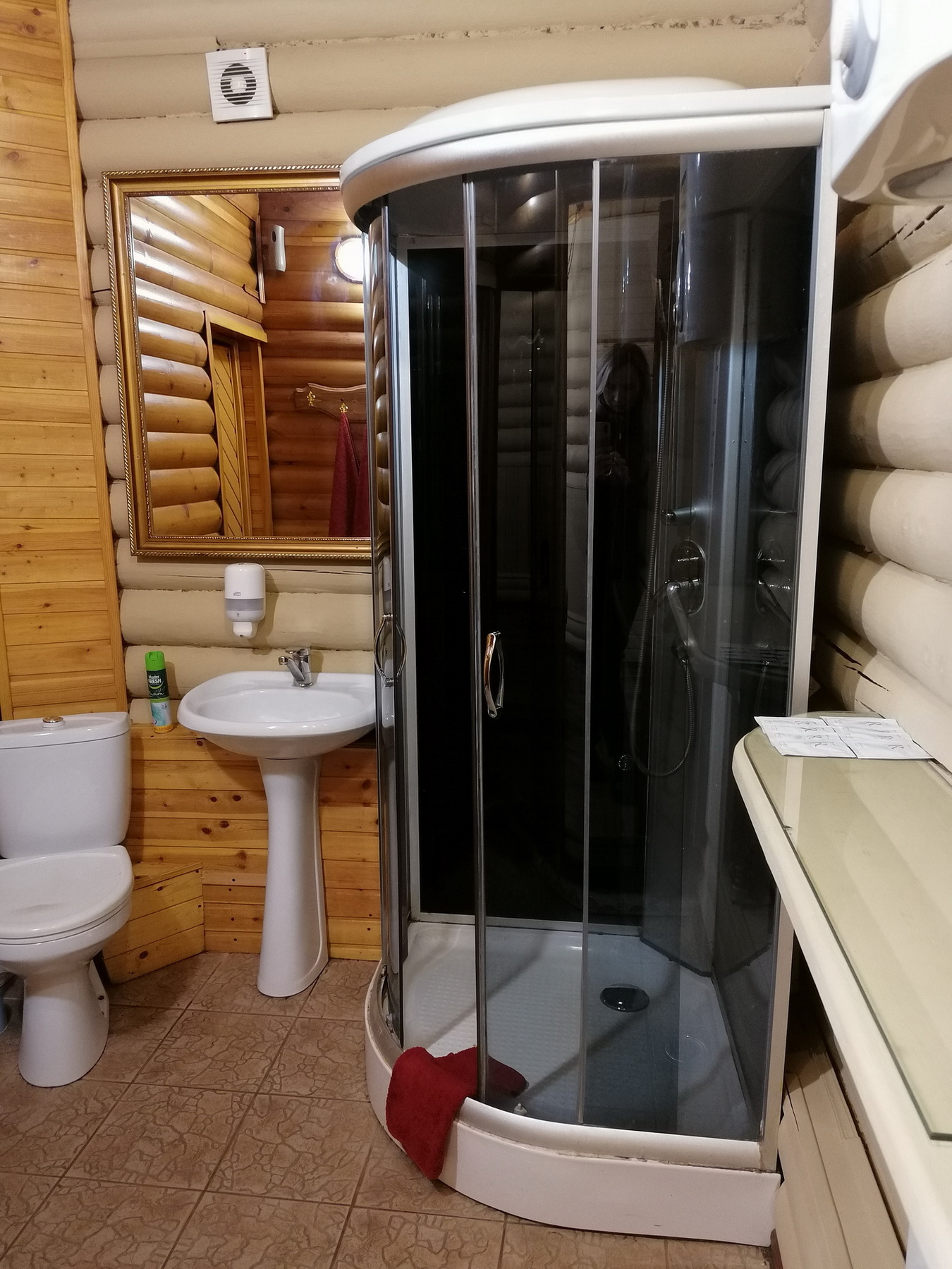 Уникальный двухэтажный коттедж из натурального деревянного сруба располагает к уединенному отдыху. С балкона второго этажа открывается живописный вид на озеро. Для комфорта гостей предусмотрены три двуспальные кровати а также двуспальный раскладной диван. Душевых комнат две на первом и втором этажах, каждая укомплектована туалетными принадлежностями. В числе удобств финская сухая сауна. Кроме коттеджа на территории комплекса имеется отапливаемый «Чайный домик» с настоящим камином и мягкой мебелью. В распоряжении гостей закрытая территория с беседкой и мангальной зоной, предоставляется мангальный набор (посуда, шампуры/решетка). К услугам гостей частная парковка. В коттедже ежедневно производится уборка, смена белья и полотенец производится по запросу. Фен предоставляется по запросу.
