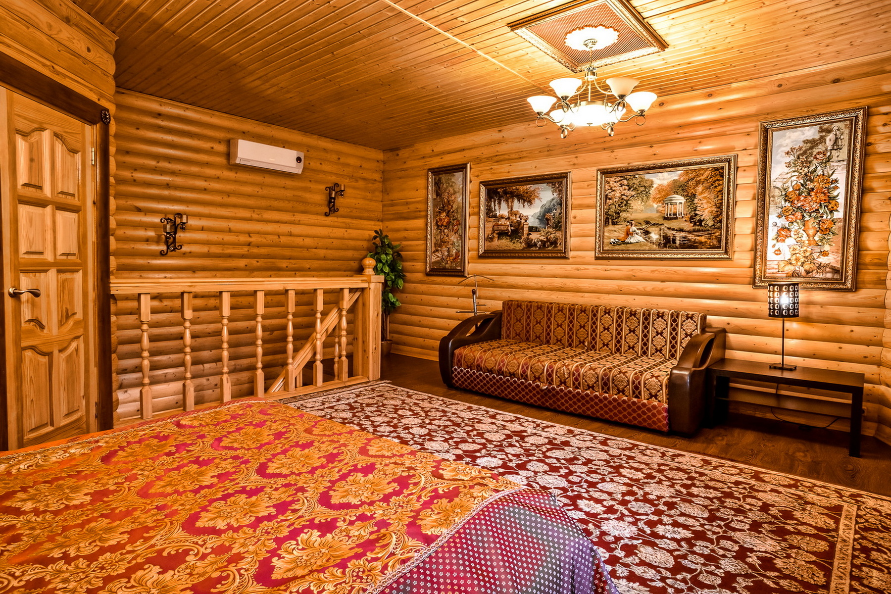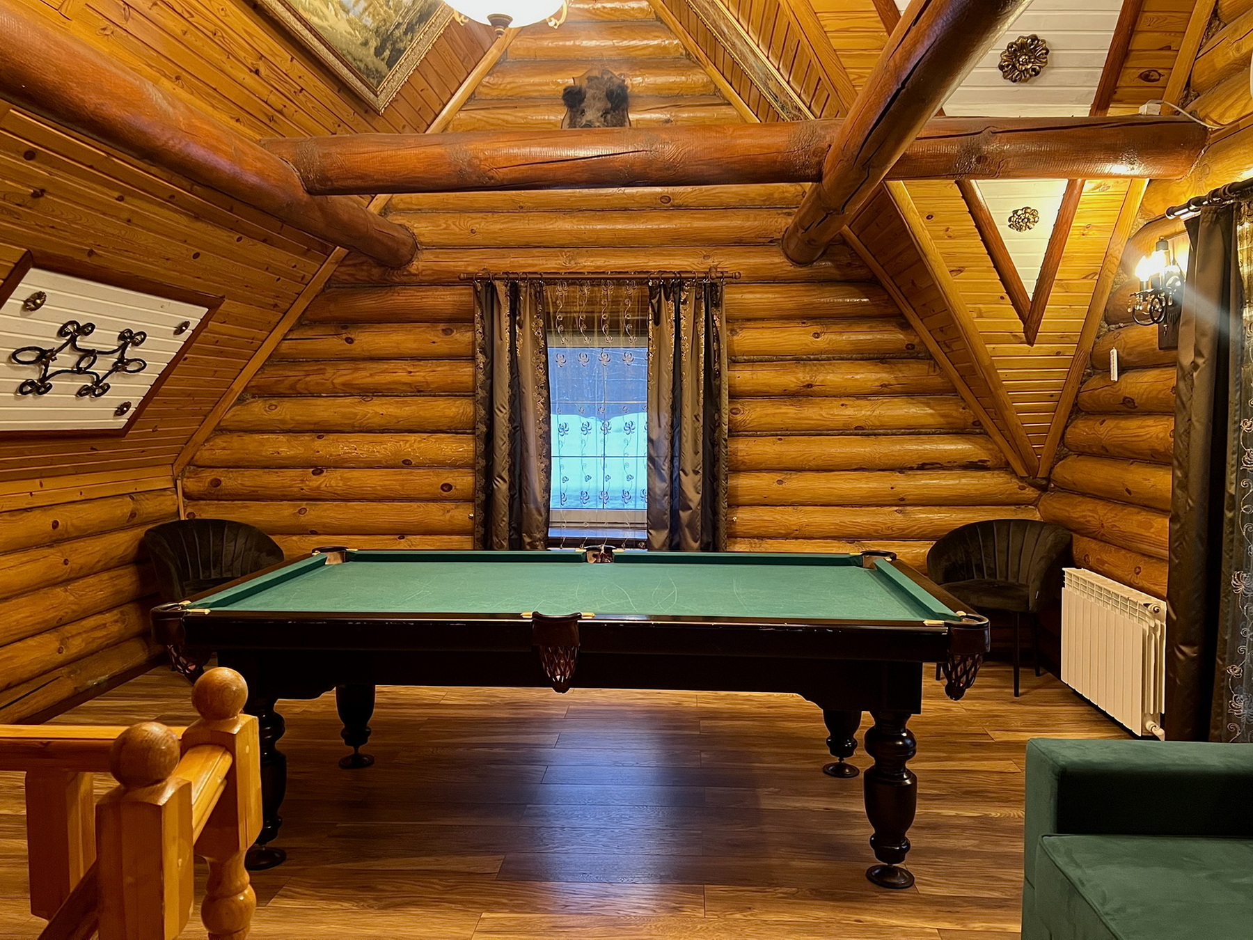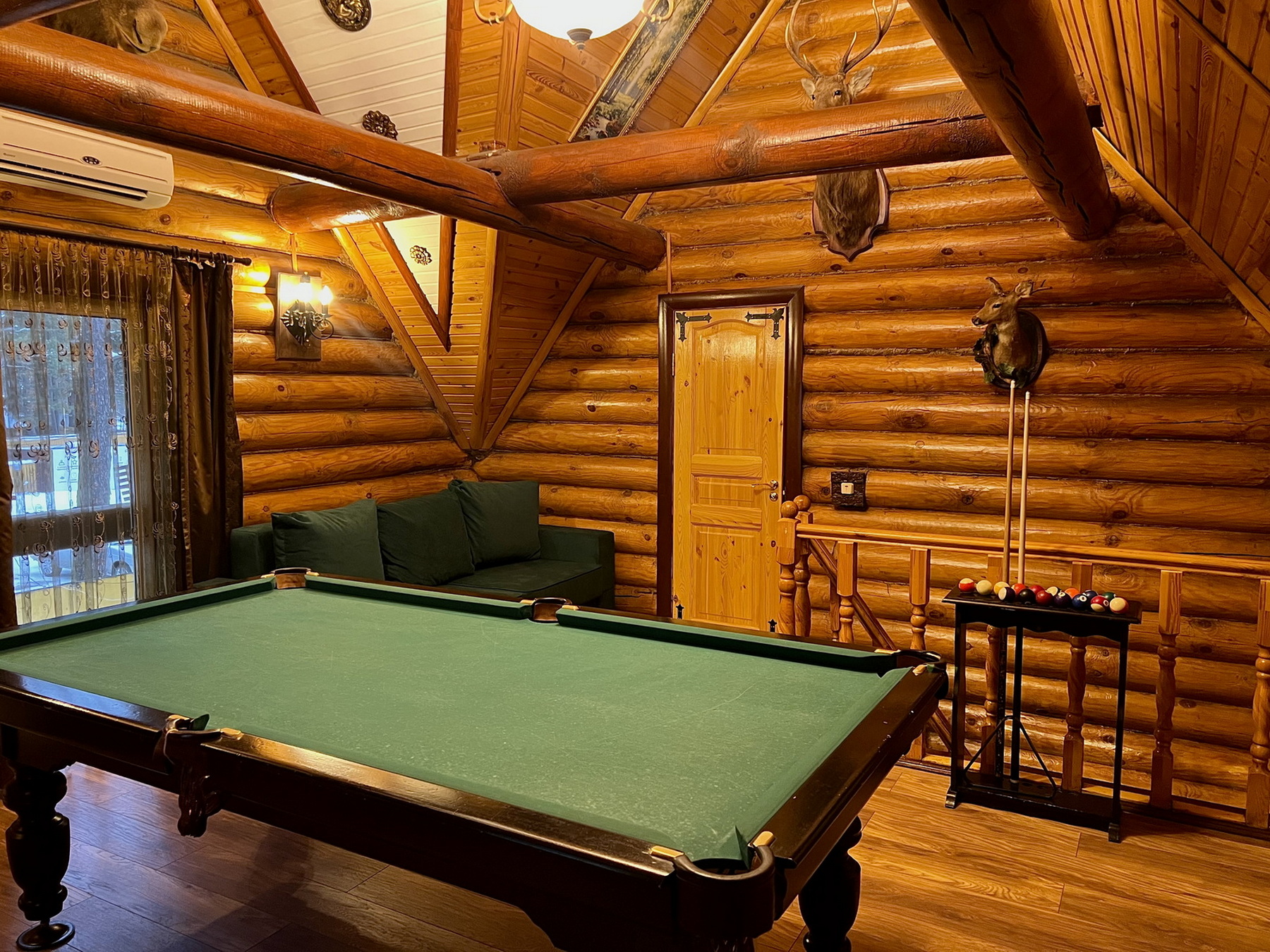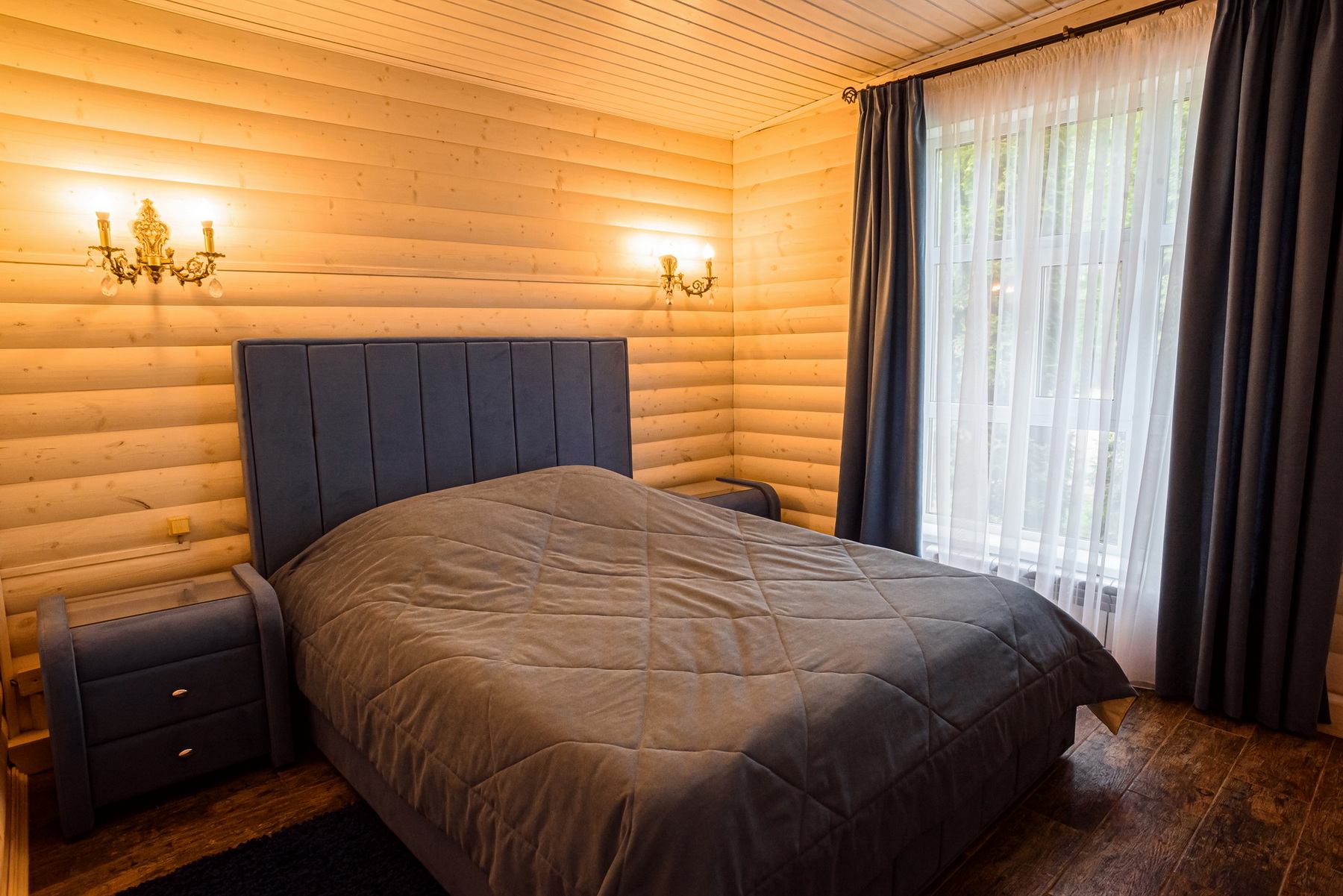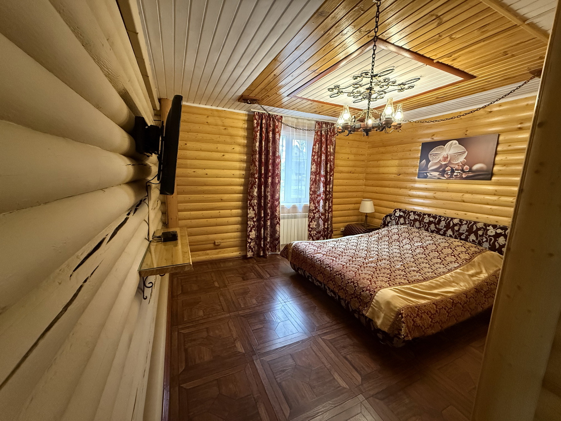 Двухэтажный коттедж из натурального деревянного сруба расположен в центральной части Клуб-Отеля на берегу небольшого озера. Для комфортного отдыха предусмотрена двуспальная кровать, зоны отдыха с двумя двуспальными раскладными диванами. В распоряжении гостей небольшая сухая сауна, балкон и беседка с мангальной зоной, предоставляется мангальный набор (посуда, шампуры/решетка). Обустроена зона для игры в бильярд с мягкой мебелью. В коттедже ежедневно производится уборка, смена белья и полотенец производится по запросу. Душевая комната укомплектована туалетными принадлежностями. Фен предоставляется по запросу.